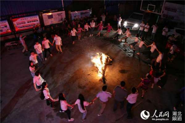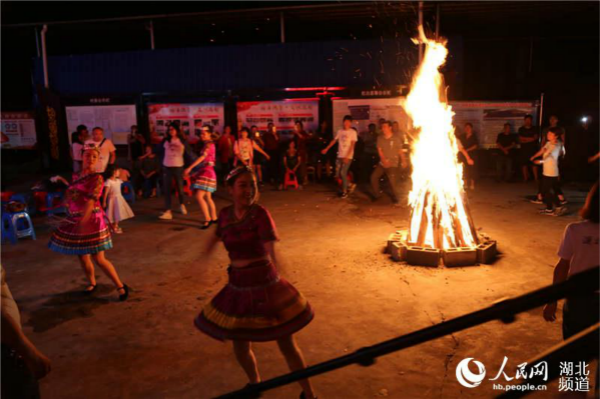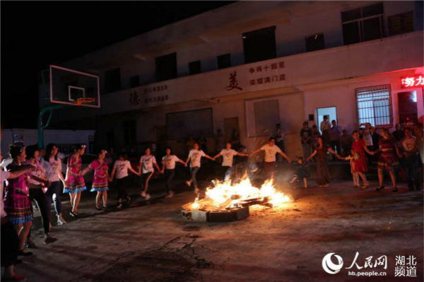 民間藝術(shù)開(kāi)場(chǎng)舞《打連廂》、土家民族舞蹈《直尕思得》等節目讓團員青年們耳目一新,切身感受到民俗藝術(shù)的魅力?;?dòng)游戲環(huán)節更是樂(lè )翻現場(chǎng),10名參與選手在規定的時(shí)間內,要向觀(guān)眾借齊三副眼鏡、五塊手表,一個(gè)個(gè)費盡口舌,“說(shuō)好話(huà)、拉關(guān)系”,最終還是有5名選手未完成任務(wù),便左手牽右耳在原地轉10圈,窘態(tài)十足。最受大家歡迎的節目是點(diǎn)燃篝火,跳起擺手舞。大家手牽著(zhù)手,繞著(zhù)篝火圍成一圈,在土家舞蹈師的示范引領(lǐng)下,隨著(zhù)音樂(lè )的節奏,盡情地舞動(dòng)。
