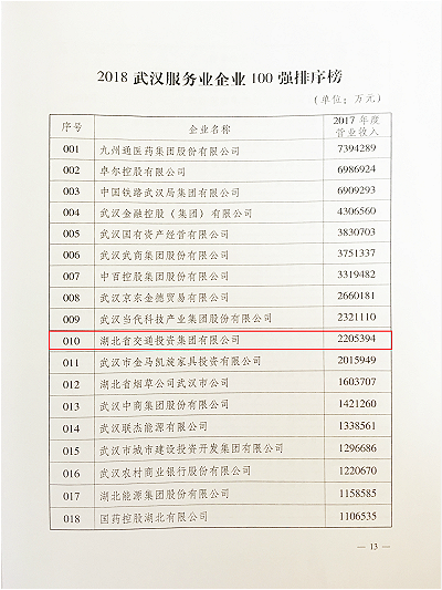 圖:集團公司躍居武漢服務(wù)業(yè)企業(yè)前10