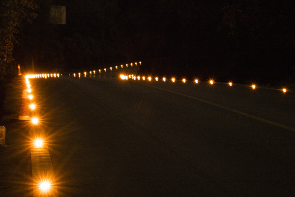 位于鄂西山區的宜(昌)巴(東)旅游公路,坡度大,彎度小,常年雨霧多,其道路安全風(fēng)險較高。經(jīng)過(guò)湖北交投新致實(shí)業(yè)發(fā)展有限公司研發(fā),湖北公路智能養護科技公司施工安裝,宜巴旅游公路成為國內首條太陽(yáng)能自發(fā)光標識公路。與過(guò)去道路反光標識不同的,太陽(yáng)能自發(fā)光標識則是利用太陽(yáng)能進(jìn)行自發(fā)光。每當夜幕降臨或自然光線(xiàn)較暗時(shí),道路兩旁的節能燈會(huì )自動(dòng)開(kāi)啟,使桔黃色的太陽(yáng)能自發(fā)光標識更加清晰。太陽(yáng)能自發(fā)光標識具有極強的雨霧穿透能力,將有效保障山區公路的行車(chē)安全。