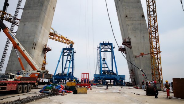 圖:嘉魚(yú)長(cháng)江公路大橋斜拉索安裝現場(chǎng)